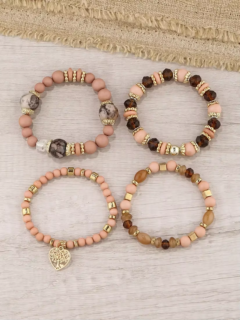 4 Armbandjes in 1, boho terracotta en goudkleur